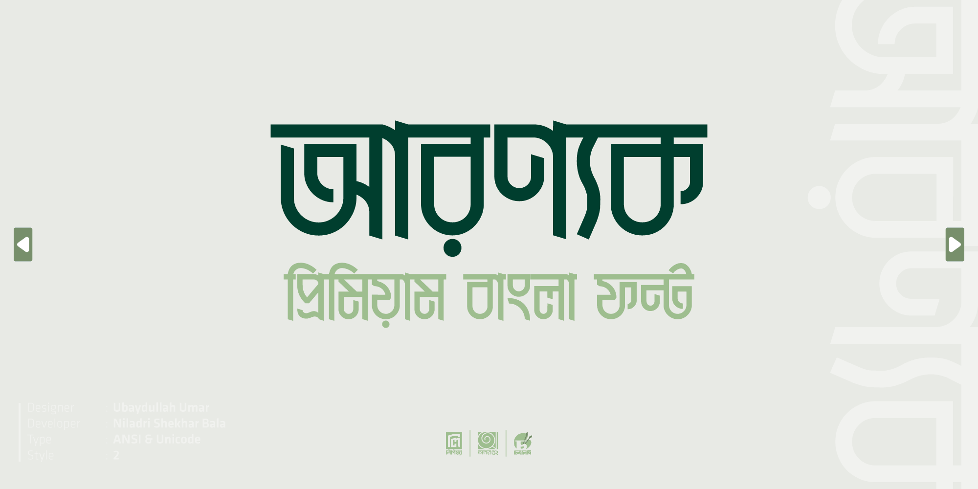| ধরণ | : | ইউনিকোড এবং ANSI |