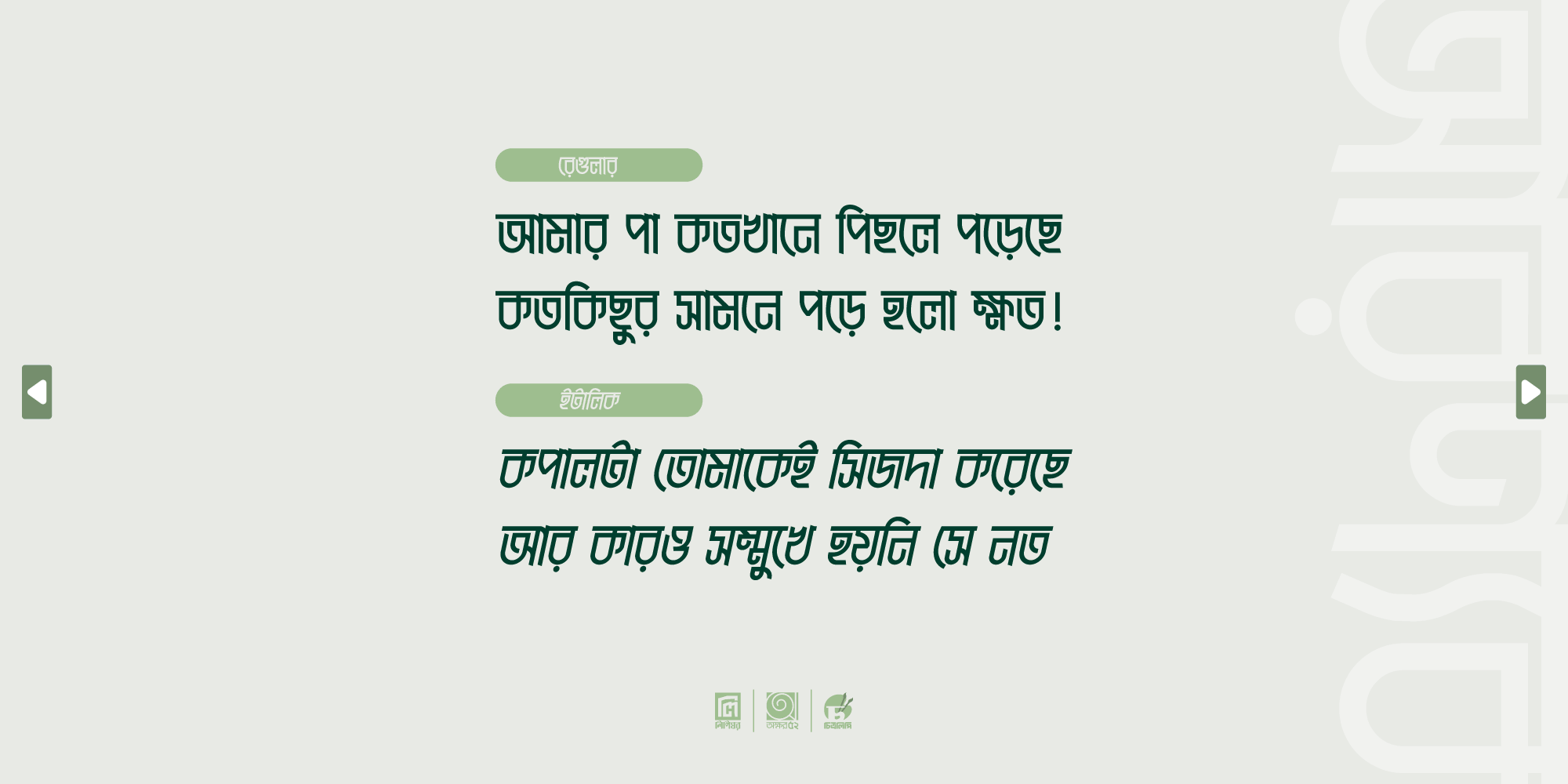 এই ফন্টটিকে সবরকম ব্যক্তিগত ও ব্যবসায়িক ডিজাইনে আপনি ব্যবহার করতে পারবেন কিন্তু অন্য কোনো ওয়েবসাইটে, সামাজিক যোগাযোগ মাধ্যম বা অন্য কোনো মাধ্যমে কোনোভাবেই বিতরণ করতে পারবেন না।