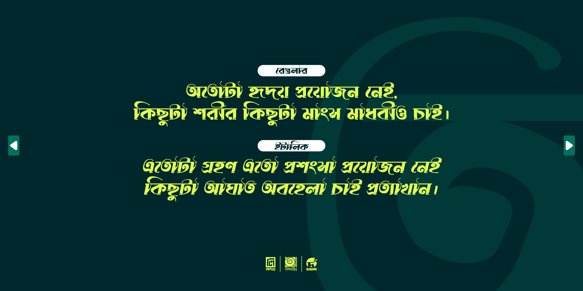 এই ফন্টটিকে সবরকম ব্যক্তিগত ও ব্যবসায়িক ডিজাইনে আপনি ব্যবহার করতে পারবেন কিন্তু অন্য কোনো ওয়েবসাইটে, সামাজিক যোগাযোগ মাধ্যম বা অন্য কোনো মাধ্যমে কোনোভাবেই বিতরণ করতে পারবেন না।