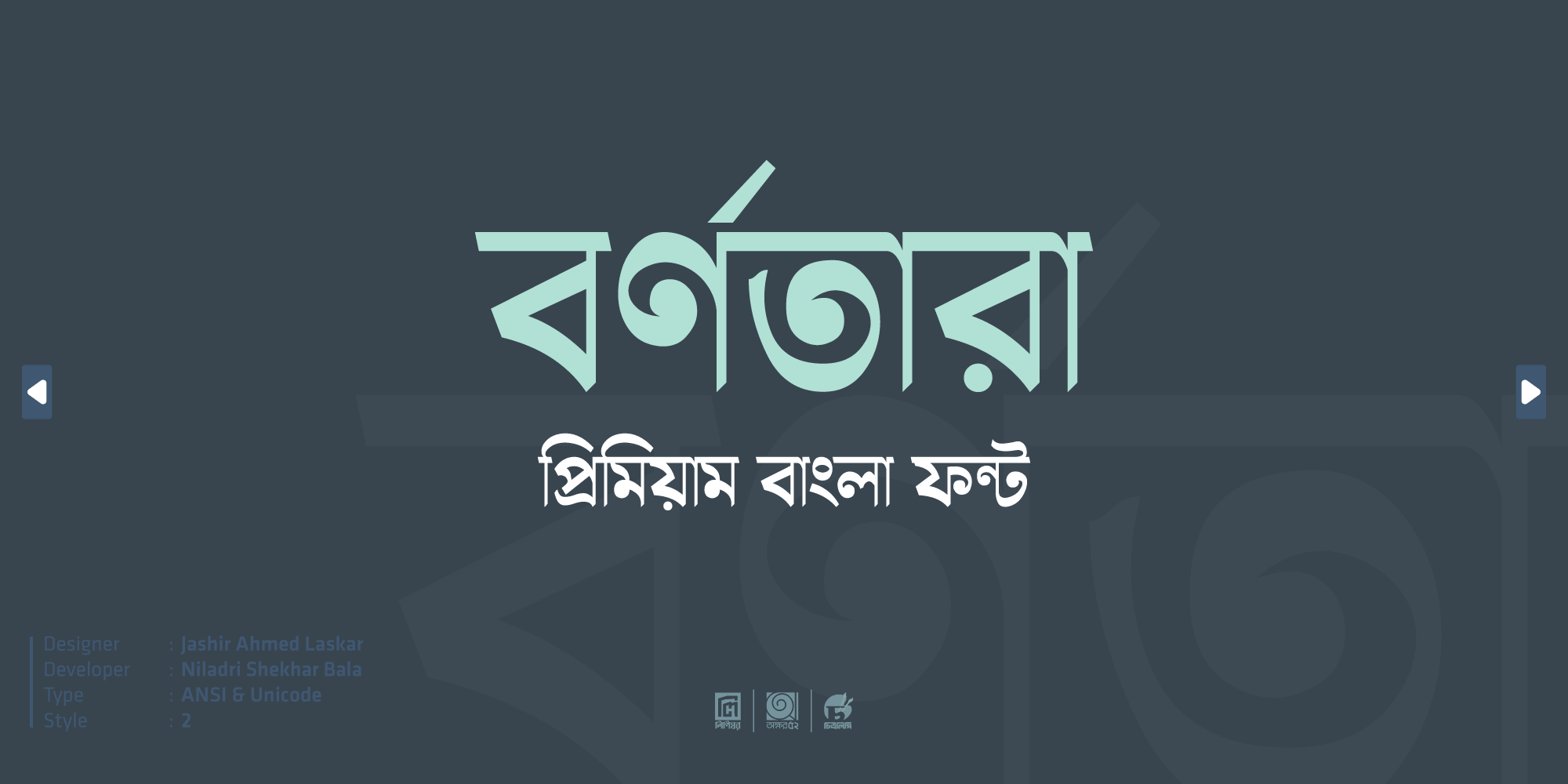 | ধরণ | : | ইউনিকোড এবং ANSI |