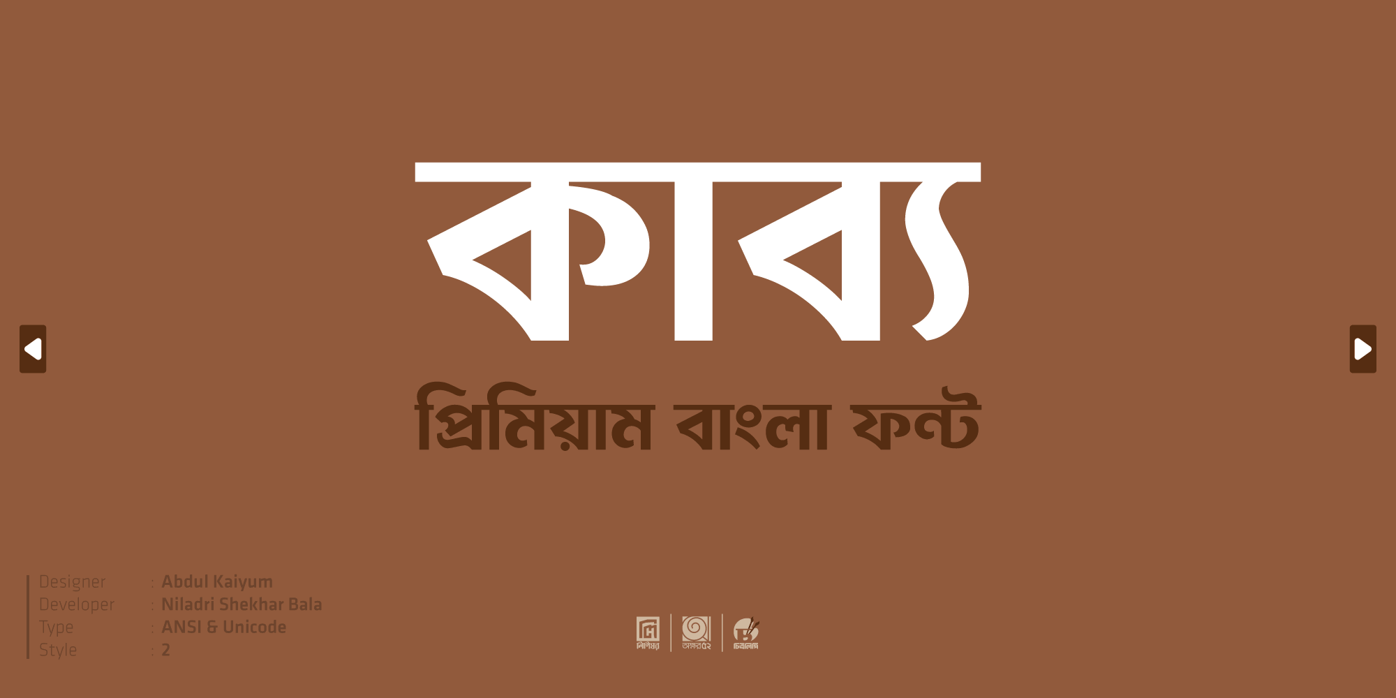 | ধরণ | : | ইউনিকোড এবং ANSI |