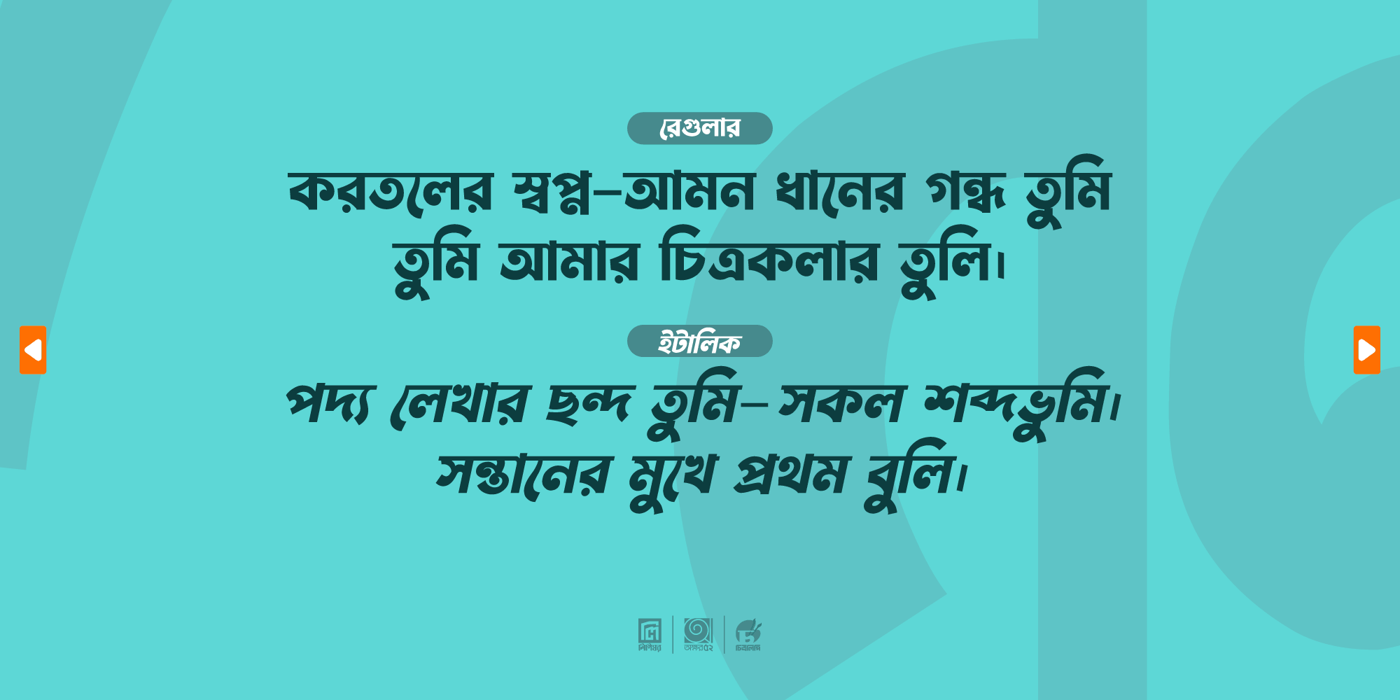 এই ফন্টটিকে সবরকম ব্যক্তিগত ও ব্যবসায়িক ডিজাইনে আপনি ব্যবহার করতে পারবেন কিন্তু অন্য কোনো ওয়েবসাইটে, সামাজিক যোগাযোগ মাধ্যম বা অন্য কোনো মাধ্যমে কোনোভাবেই বিতরণ করতে পারবেন না।