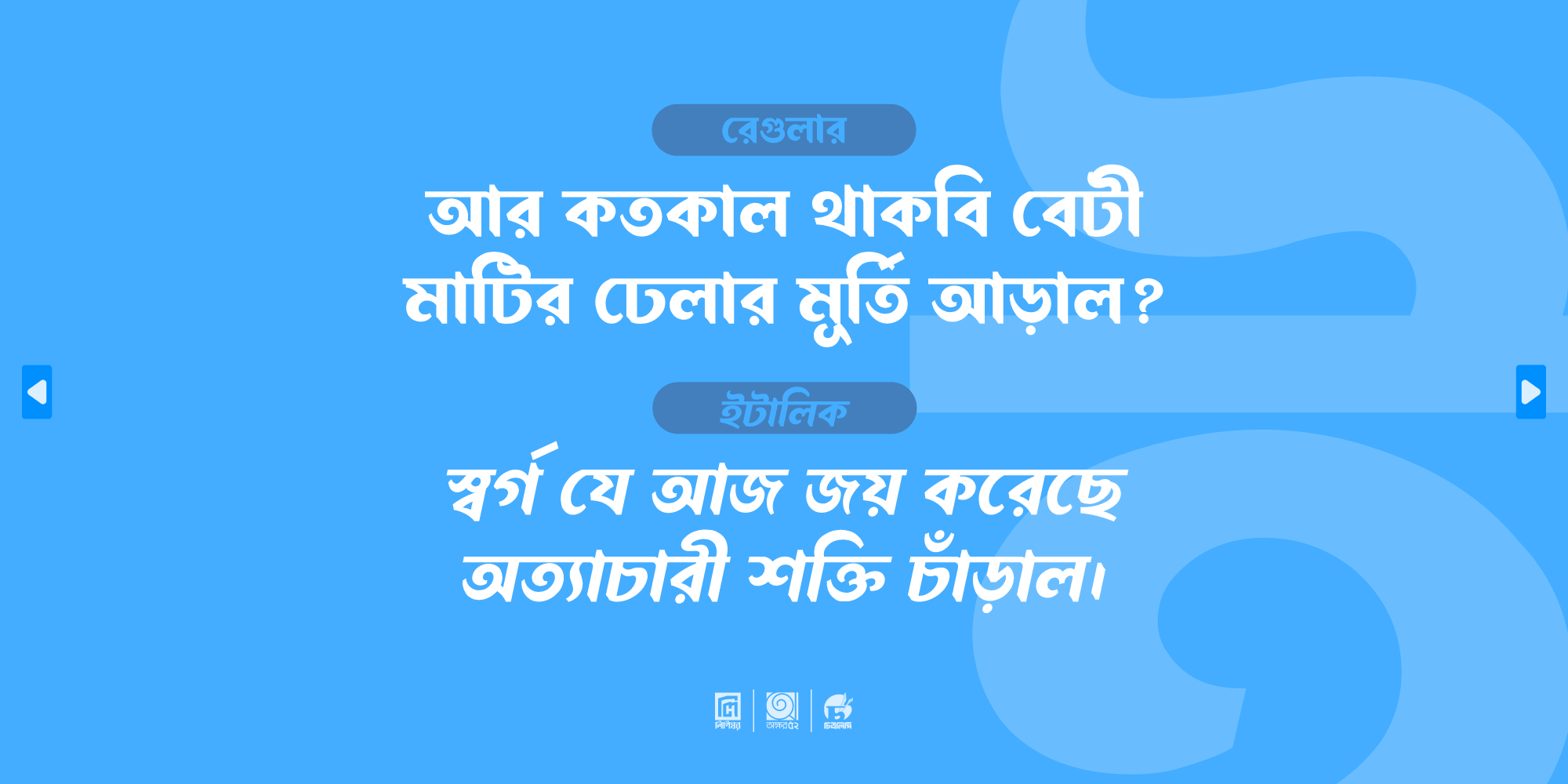 এই ফন্টটিকে সবরকম ব্যক্তিগত ও ব্যবসায়িক ডিজাইনে আপনি ব্যবহার করতে পারবেন কিন্তু অন্য কোনো ওয়েবসাইটে, সামাজিক যোগাযোগ মাধ্যম বা অন্য কোনো মাধ্যমে কোনোভাবেই বিতরণ করতে পারবেন না।