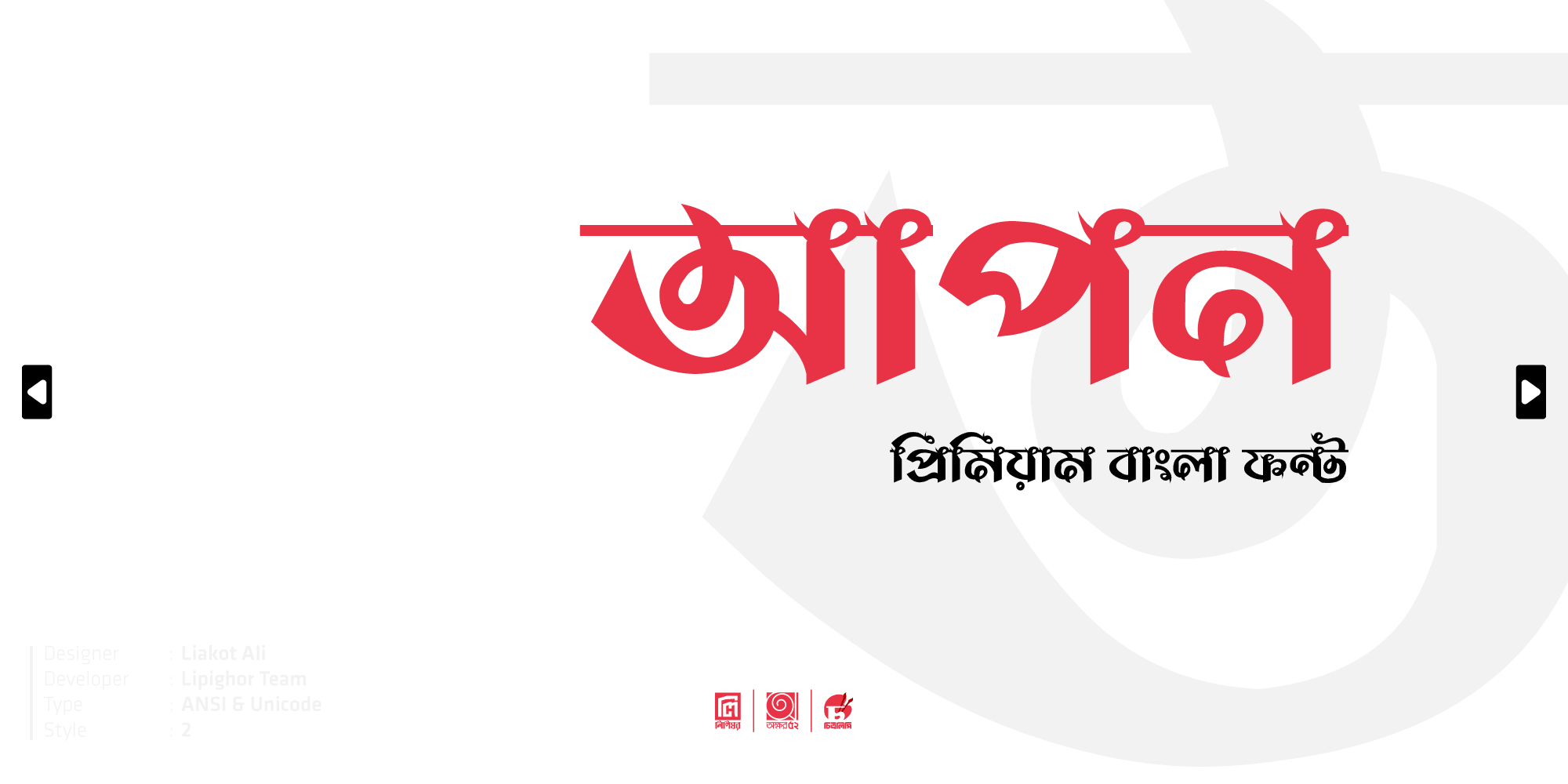 এই ফন্টটিকে সবরকম ব্যক্তিগত ও ব্যবসায়িক ডিজাইনে আপনি ব্যবহার করতে পারবেন কিন্তু অন্য কোনো ওয়েবসাইটে, সামাজিক যোগাযোগ মাধ্যম বা অন্য কোনো মাধ্যমে কোনোভাবেই বিতরণ করতে পারবেন না।